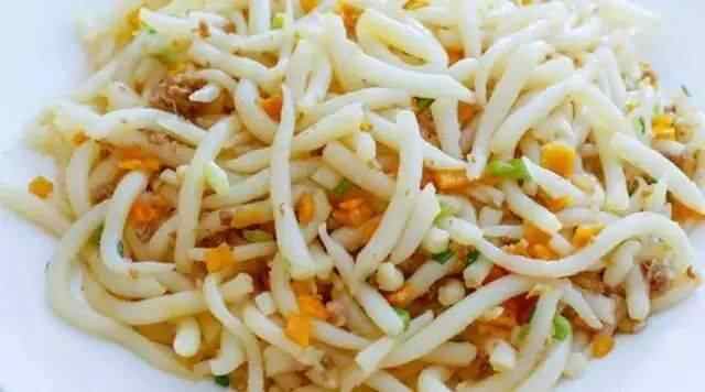 传统的猪肠碌由豆芽、炒河粉做成