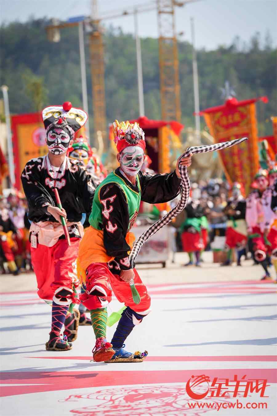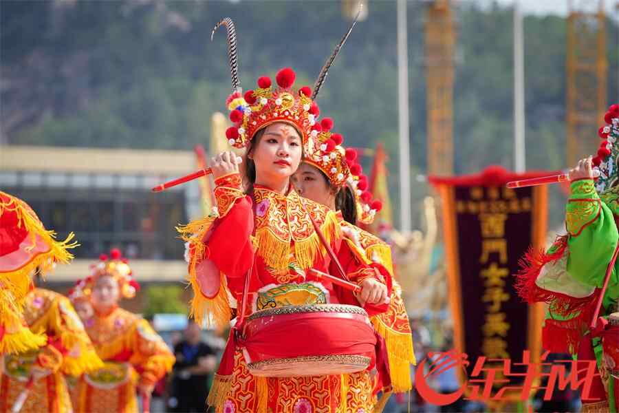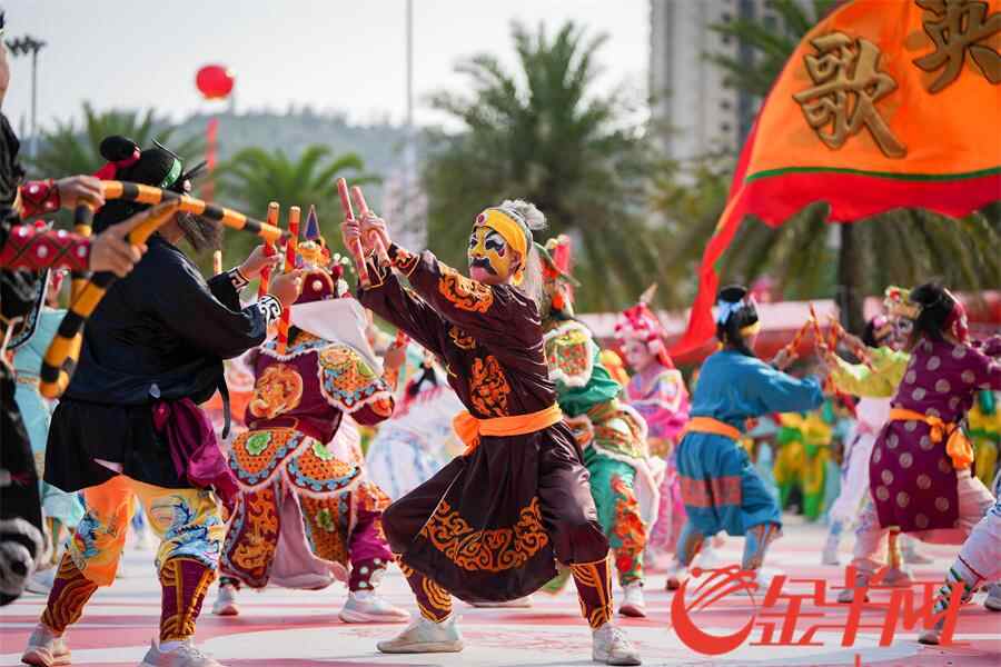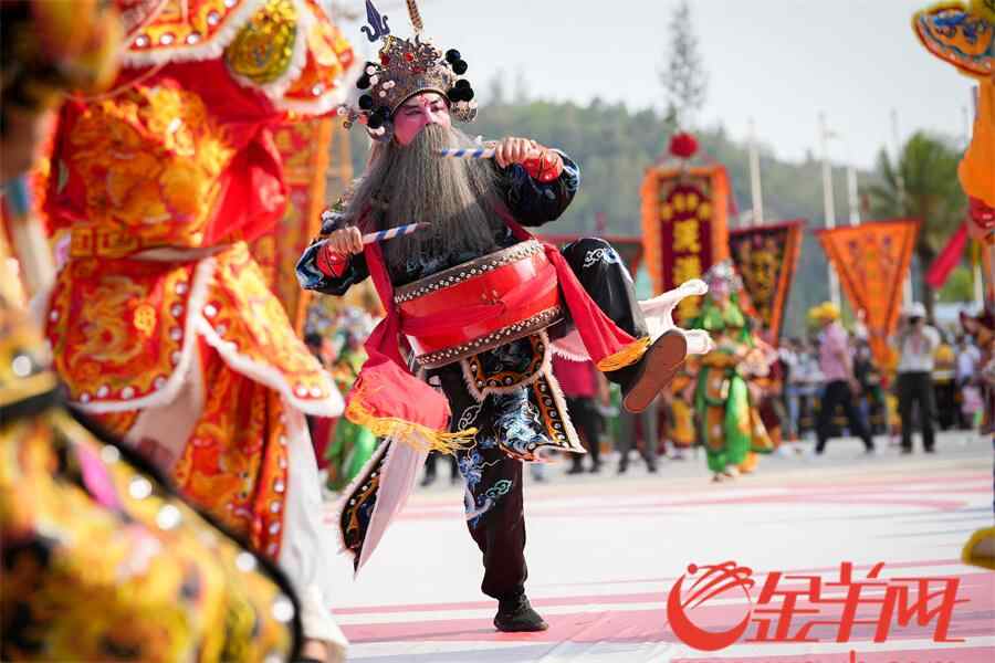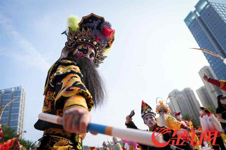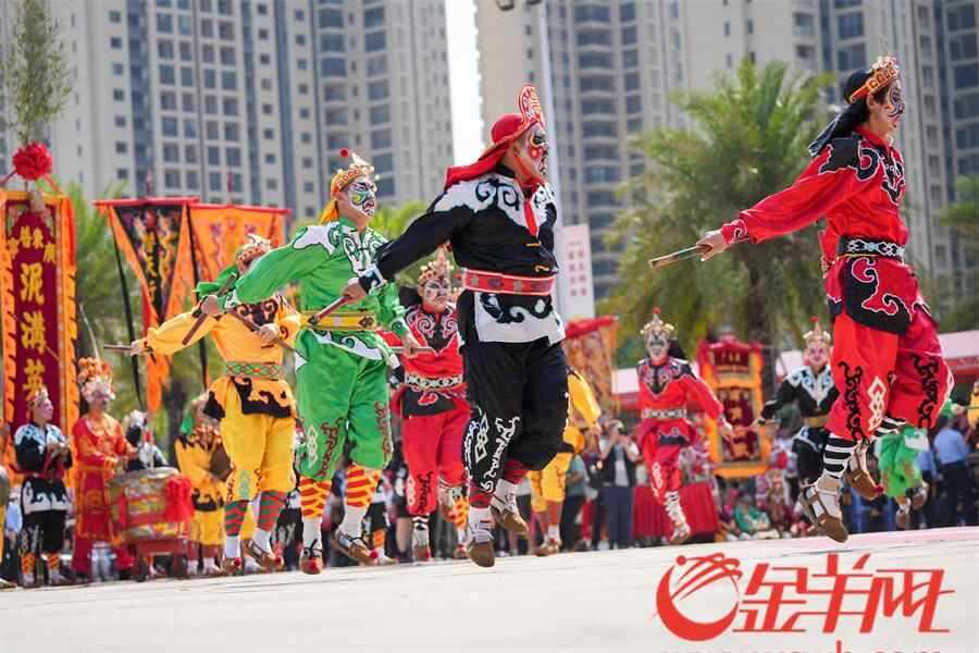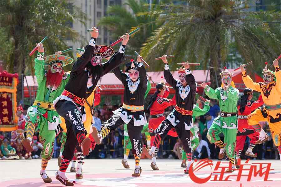 羊城晚报记者在活动现场看到,英歌队员激情澎湃,刚健威猛的动作,伴随着潮州大锣鼓、英歌槌和粗犷豪放的吆喝声,营造喜庆的节日气氛,也寄托着人们祈求平安、风调雨顺的美好愿望,向外地游客展现浓厚的潮汕名俗文化特色。
