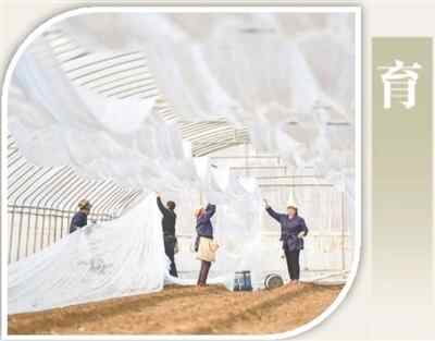 山东省青州市益都街道北河东村一处蔬菜育种试验基地内,工人在准备蔬菜繁殖所需的保温膜。 王继林摄(影像中国)
