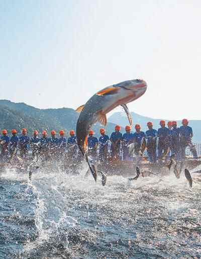 浙江省杭州市淳安县千岛湖国家级水产种质资源保护区内,渔民在进行“巨网捕鱼”。 谢航凯摄(影像中国)