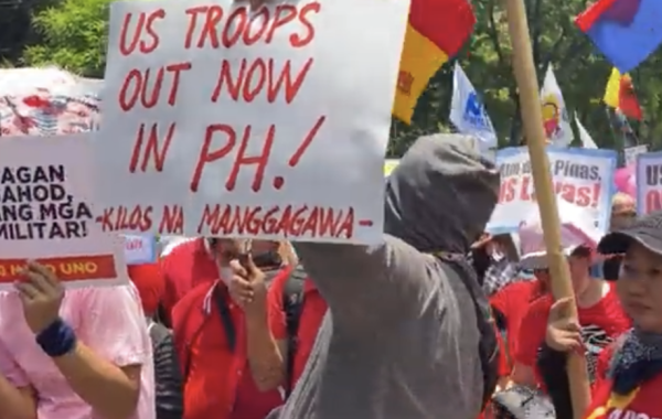 根据外媒发布的抗议现场照片及视频,菲律宾抗议者5月1日聚集在美国使馆外,抗议美菲两国政府达成协议,向美军开放更多在菲律宾的军事基地。抗议者们举着“反对美国军队和基地!反对帝国主义战争!”的横幅,还有人举着“美国军队立即离开菲律宾!”的标语。同时,有数十名警察被部署在美国使馆附近,应对抗议活动。