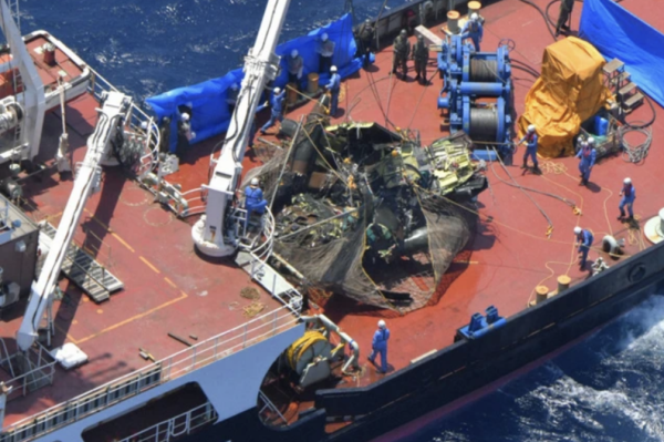 日本自卫队失事直升机从海里捞上来