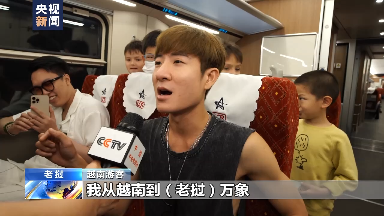 在中老铁路国际旅客列车的跨境车厢里,有来自中国北京、上海、辽宁等各地的游客,他们通过新闻和互联网了解到这一出行选择,认为坐火车去老挝游玩,性价比较高,还能错开人流高峰。