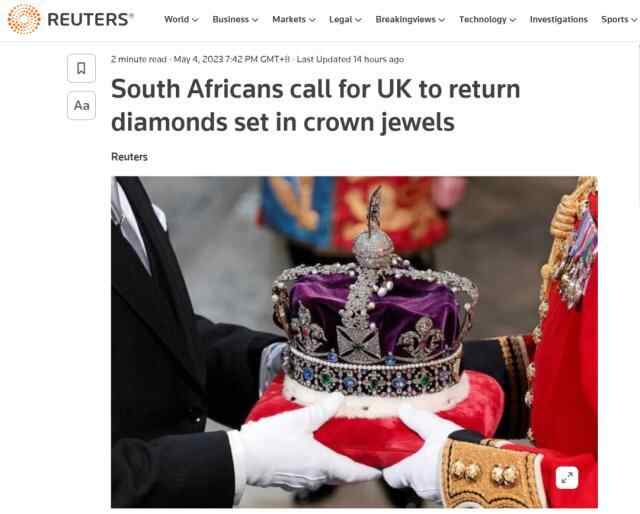 据路透社报道,在查尔斯三世的加冕典礼前夕,南非人要求英国归还世界上最大的钻石“非洲之星”,而这颗钻石已镶嵌在加冕仪式所需的皇家权杖上。