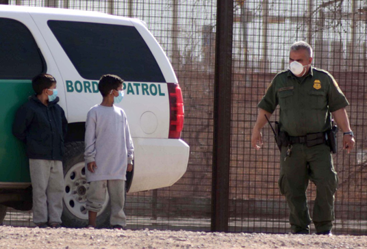 这张2021年3月27日在墨西哥华雷斯拍摄的照片显示,两名来自危地马拉的移民儿童在跨越美墨边境的里奥格兰德河后,等待接受美国边境巡逻队人员的处理。新华社发(戴维·佩纳多摄)