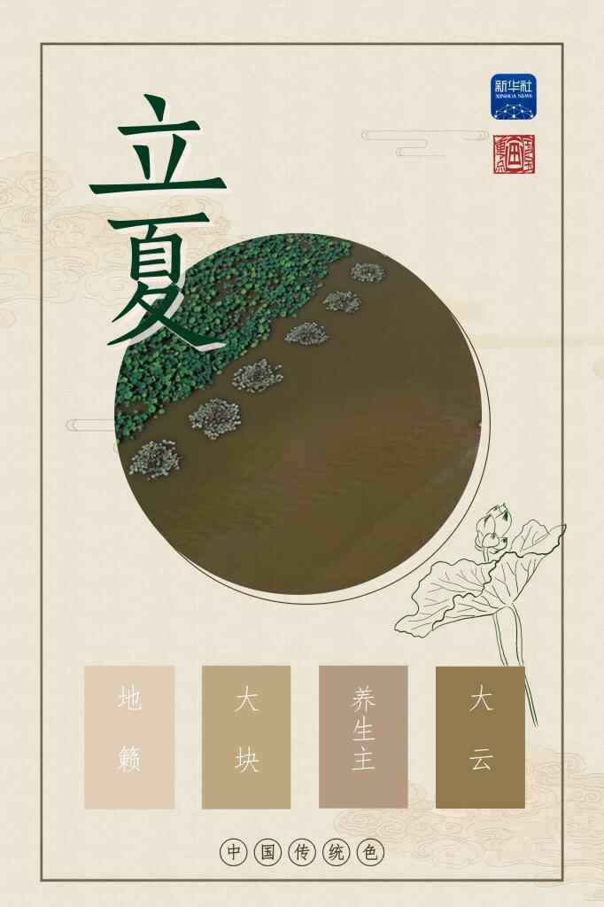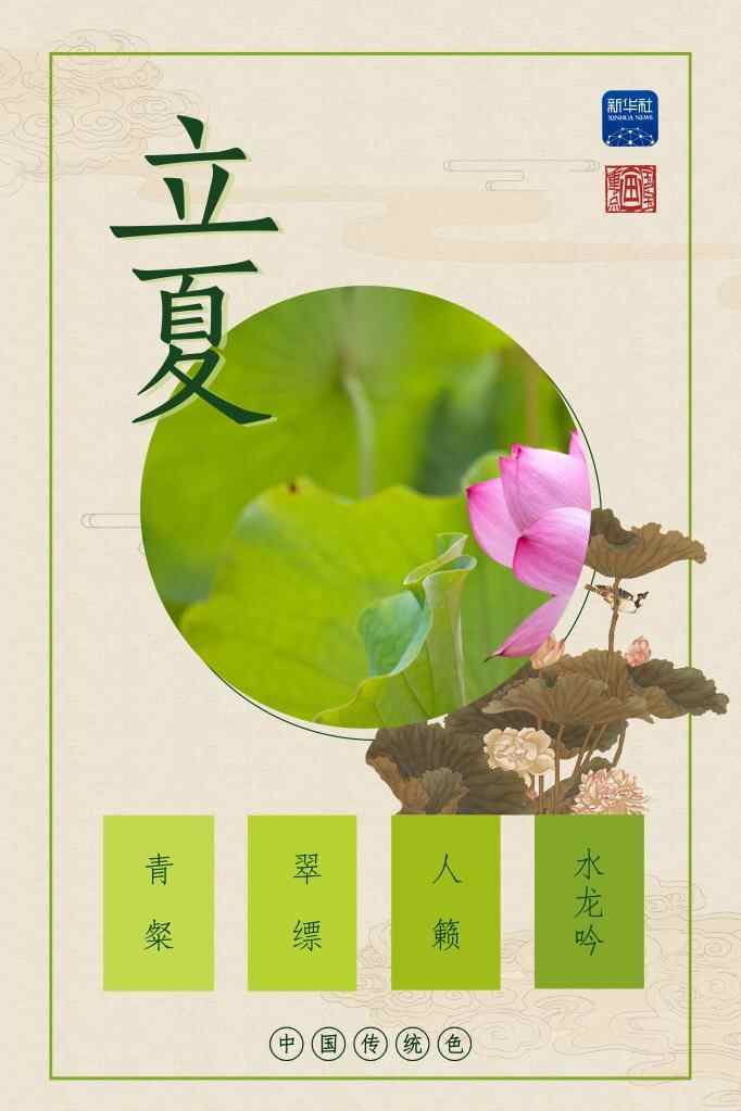 我们用青粲、翠缥、人籁、水龙吟这四种颜色,来展现立夏的生机。荷叶在风中摇曳生姿,映日照水,让人不由得期待盛夏“接天莲叶无穷碧”的美景。