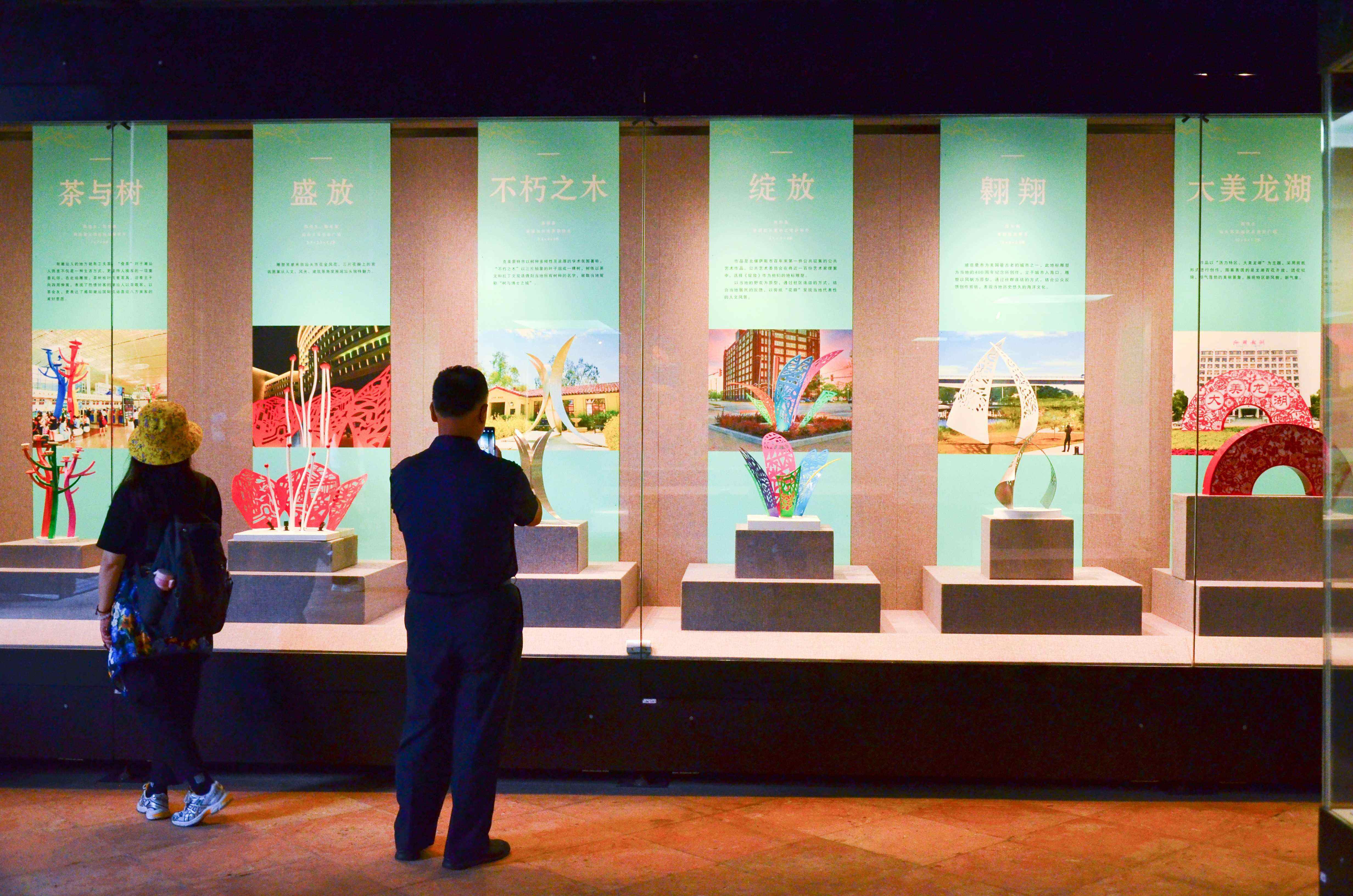 展览现场展出了陈传生、陈斯嘉的多件代表作品,包括《SWA》《盛放》《绽放》《陈》《林间》《跋山涉水》等。其中,《SWA》创作于2017年,原作位于揭阳潮汕国际机场主航站楼前广场。该作品以机场IATA代码SWA为主体,用当代艺术结合传统剪纸表现潮汕文化。《SWA》表面采用剪纸图案,展现了潮剧、赛龙舟、舞龙舞狮、双咬鹅等14项潮汕民俗和艺术;底部的无边水池寓意“有潮水的地方必有潮人”。该作品整体呈现浓郁的潮汕风情,向国内外来宾宣传潮汕的历史文化。