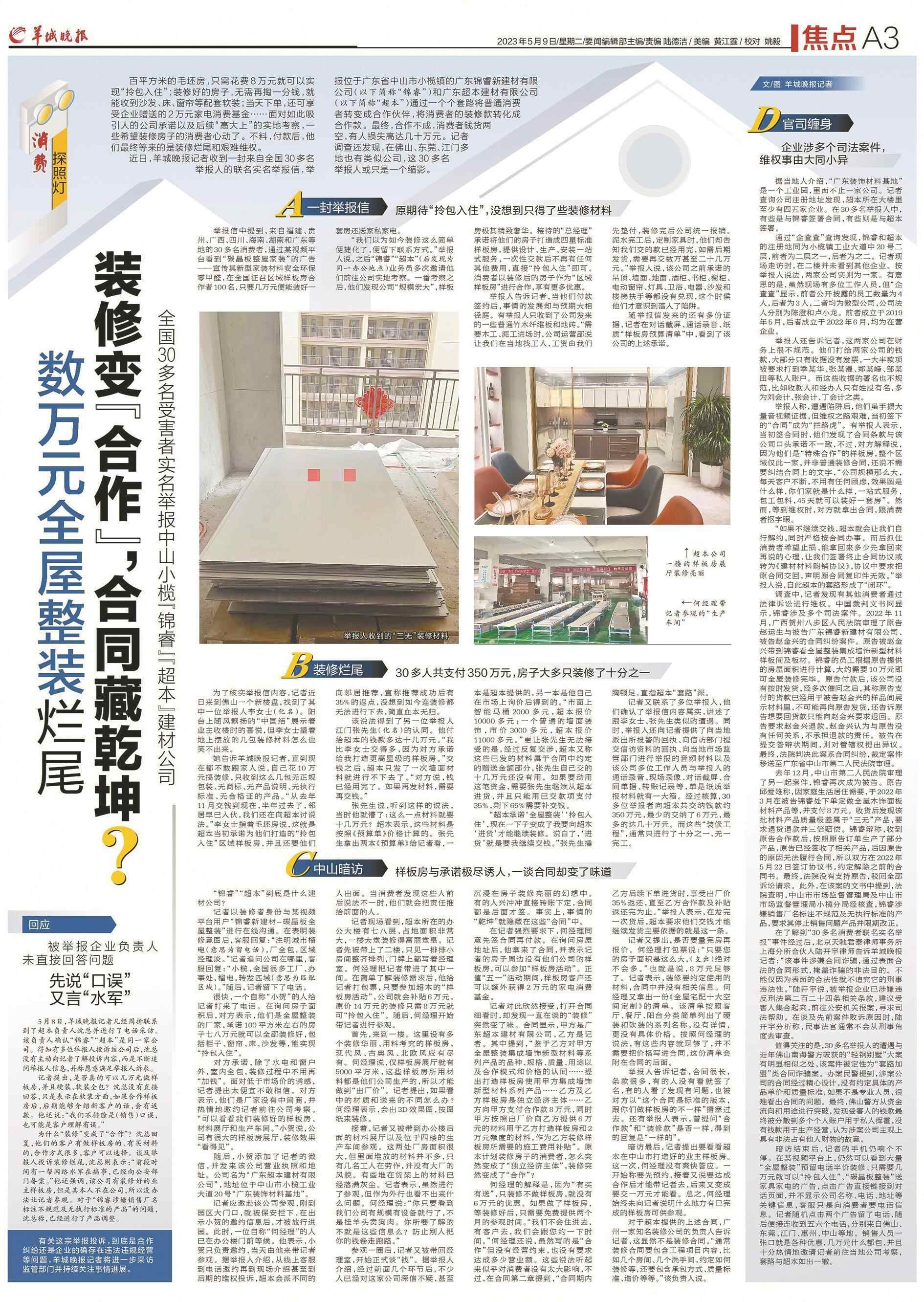 5月9日羊城晚报推出《数万元全屋整装烂尾 装修变“合作”,合同藏乾坤?全国30多名受害者实名举报中山小榄“锦睿”“超本”建材公司》独家报道,在社会上引起广泛关注。多位网友跟帖称有过类似遭遇,也有网友表示自己也是超本“陷阱”中的一员。当天,羊城晚报记者兵分多路进行追踪报道。有意思的是,超本销售人员大力推荐的“样板房活动”,突然有了限制。