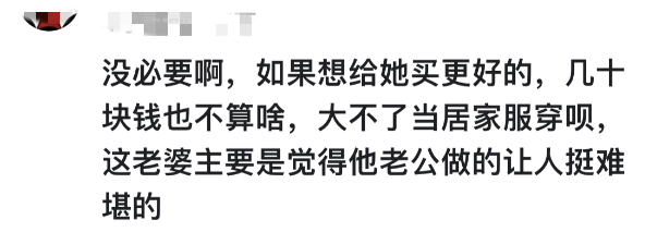 事情发酵后,视频中的妻子回应称,买的衣服价格便宜质量很一般,丈夫想让她退掉买好的,但她觉得无所谓,并不是网上传的丈夫很小气。