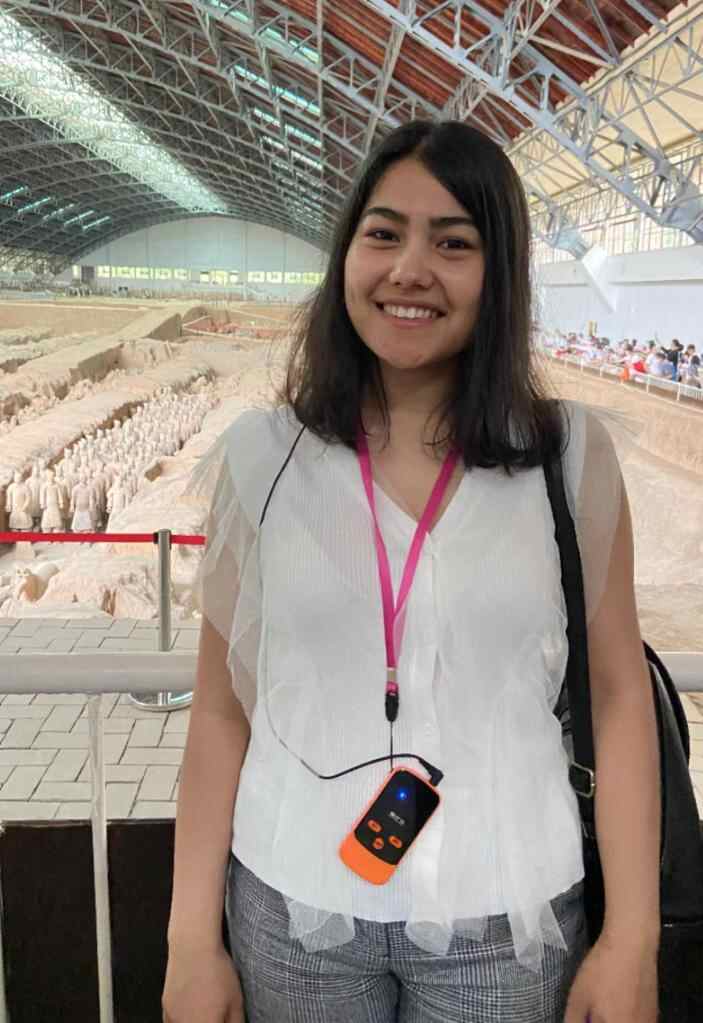 卡莉达参观秦兵马俑时拍照留念。受访者供图