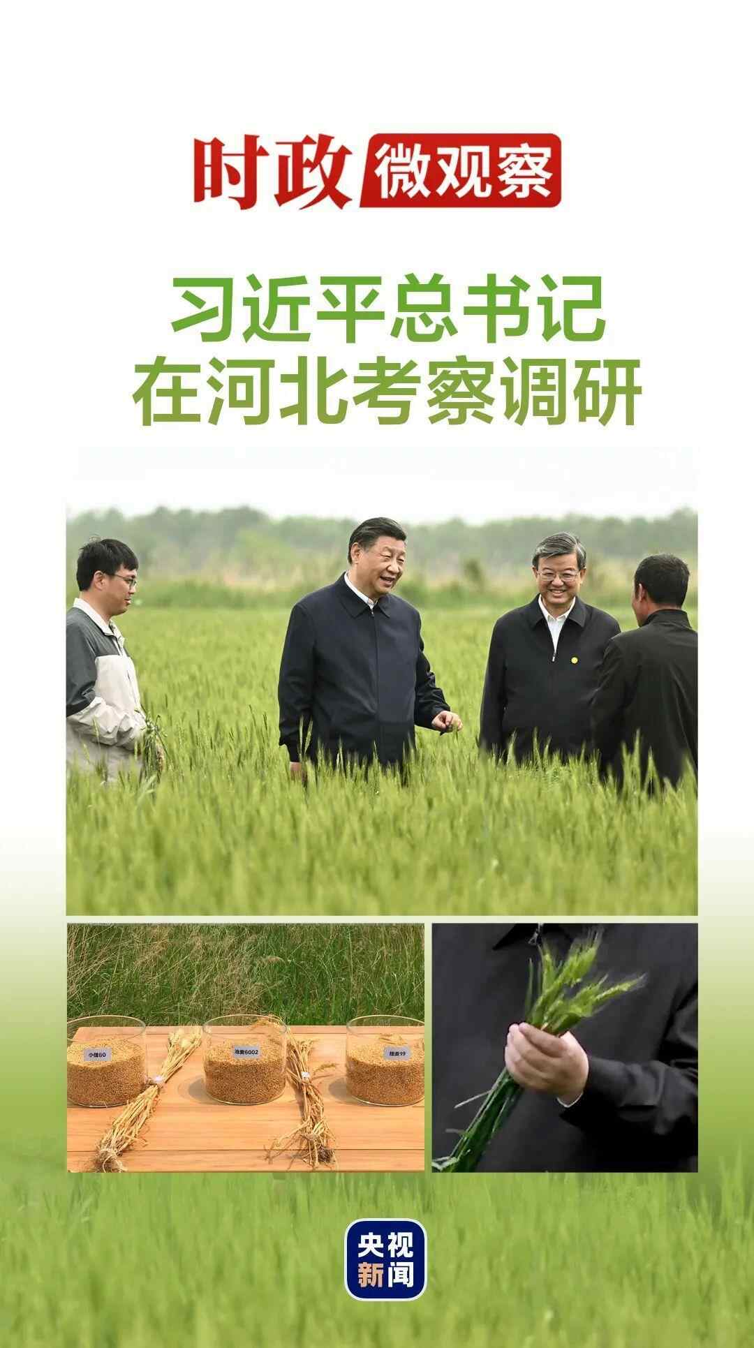 5月11日,在河北沧州考察时,习近平总书记走进黄骅市仙庄片区一片旱碱地麦田,仔细察看小麦长势,了解当地旱碱麦种植推广及产业化情况。总书记向正在田里劳作的种植户、农技专家询问旱碱麦产量、价格、品质、收益等,指出要“做好盐碱地特色农业这篇大文章”。
