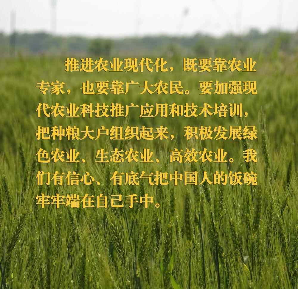 从东北平原到中原大地,从南繁基地到北疆果园,习近平总书记在考察期间经常到田间地头看一看,强调要保障粮食安全,藏粮于地、藏粮于技,强调种业创新、耕地保护,强调要积极发展绿色农业、生态农业、高效农业,加快实现高水平农业科技自立自强。