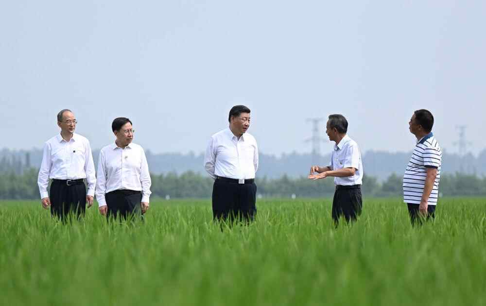 2022年6月8日,习近平在四川眉山市东坡区太和镇永丰村高标准水稻种植基地考察,了解水稻试验育种和种植推广情况。