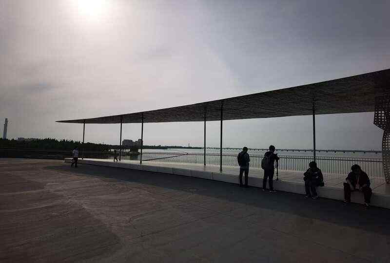 市民在连接上海青浦与江苏吴江的人行桥上休息。中青报·中青网记者 王一迪/摄