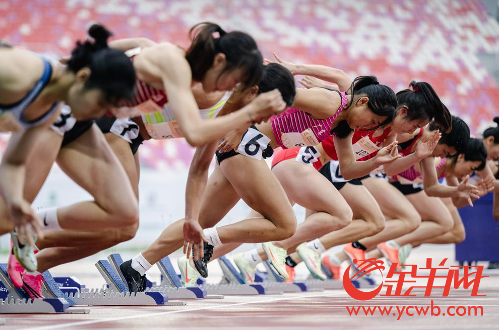女子100米预赛中 选手们起跑瞬间