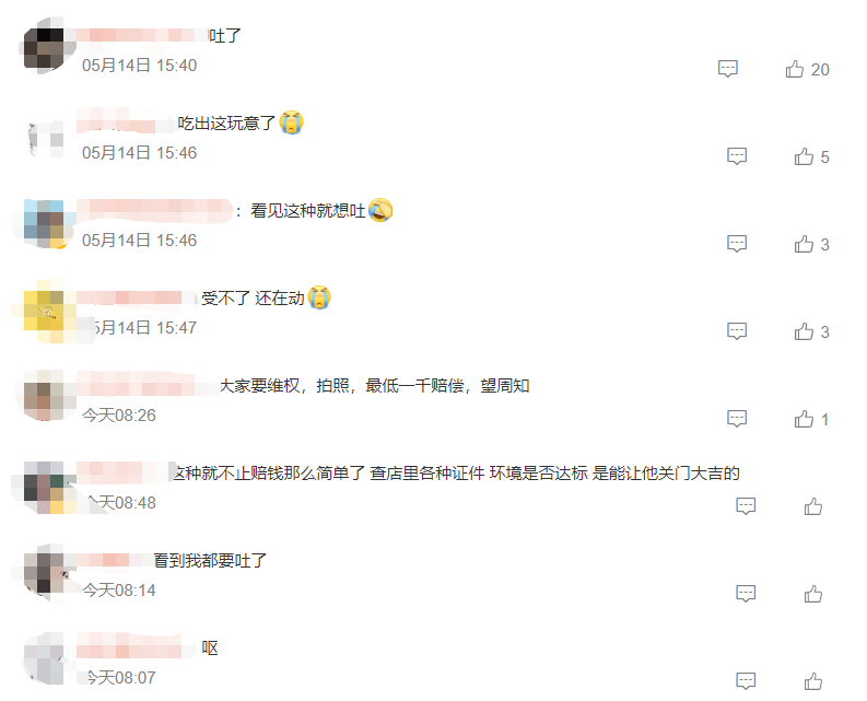 5月14日,江苏苏州有网友发视频称,早晨路边店家买的肉饼,吃了一口发现好多蛆在爬动。