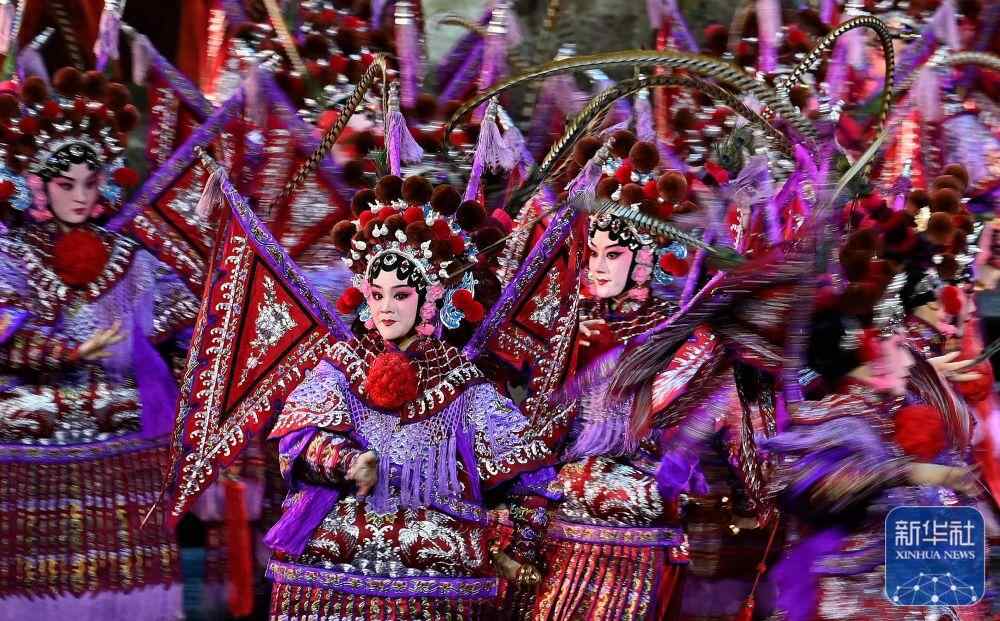↑演员在第九届中国秦腔艺术节闭幕式上演出婺剧《大破天门阵》(2022年6月24日摄)。新华社记者 刘潇 摄