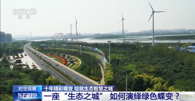 而曾经是寸草不生的盐碱荒地,如今也已经被改造成了绿树成荫的花园城市。累计绿化面积超过1100万平方米,建成区绿地率达50%以上,40座公园建成投用,居民走出家门就可到达公园散步休憩,呼吸清新空气,感受家门口的“诗和远方”。 从最初的臭水沟、盐碱滩到现在的“最美河湖”、花园城市,中新天津生态城是如何演绎绿色蝶变?