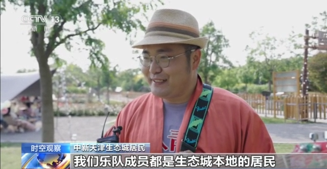 中新天津生态城居民:我们乐队成员都是生态城本地的居民,因为爱好,因为音乐走在了一起。我们生态城周边的公园非常多,环境又特别的好,给我们乐队这样一个特别好实现自己梦想的舞台。