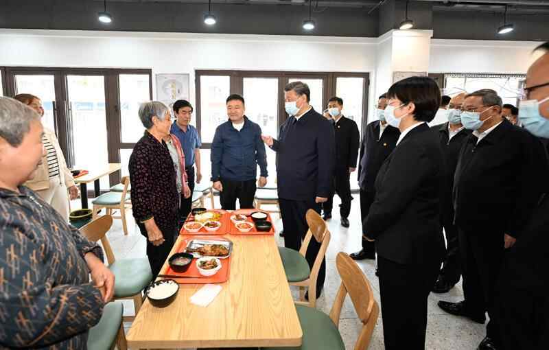 △2023年5月10日,习近平总书记在河北雄安新区容东片区南文营社区食堂同就餐的社区老人亲切交流。