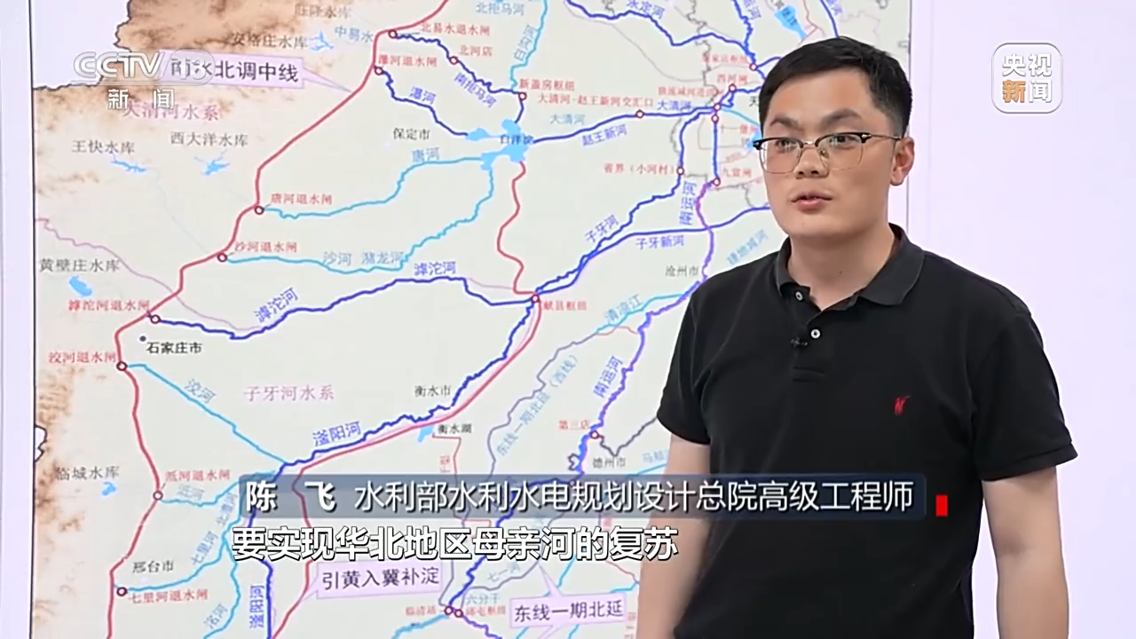 水利部水利水电规划设计总院高级工程师 陈飞:要实现华北地区母亲河复苏,关键是让河流有水,并且流动起来。那么水从哪儿来?一个是南水北调中线一期工程,途经多条母亲河,在保障生活生产供水的情况下,为母亲河实施生态补水。并且在丹江口水库汛前和汛期,利用富余的水量,相机增加生态补水量,引黄还有引滦以及上游水库的水源,为母亲河实施生态补水。