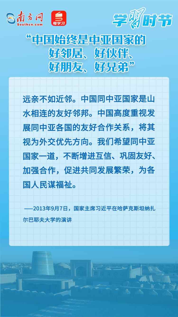习近平主席一直非常重视我国与中亚国家的战略伙伴关系与经贸往来,多次就中国—中亚关系提出重要论述,作出重要部署。下面,让我们一起通过习近平主席的重要论述,回顾中国与中亚国家源远流长的友谊,读懂中国—中亚关系的重要意义。