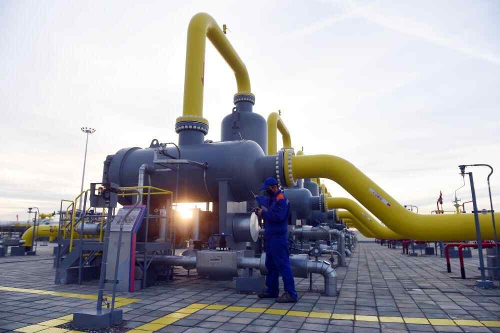 工作人员在中亚天然气管道霍尔果斯计量站进行巡检(2015年11月11日摄)。新华社记者 陈晔华 摄