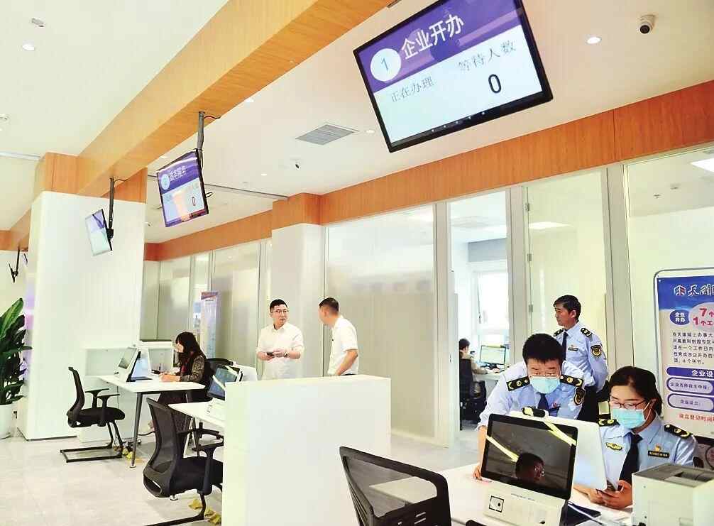 走进天开园综合服务中心一楼,各项政务服务窗口一字排开。现场可以提供320个事项的办理,企业遇到的政务服务事项全都可以在这里“一站式”办理。