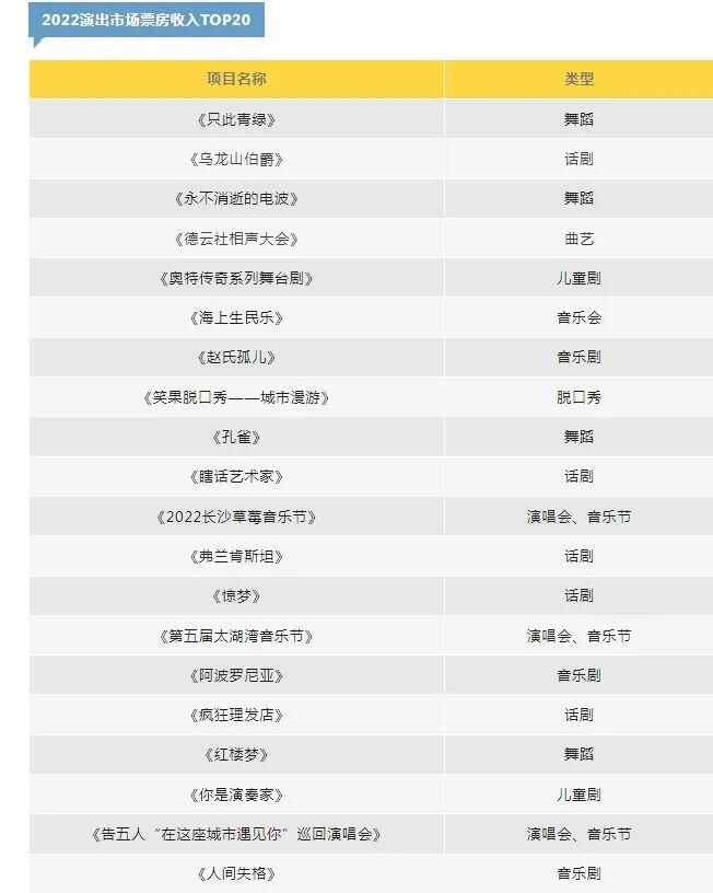 中国演出行业协会发布的《2022年中国演出市场年度报告》显示,全年曲艺类演出票房收入6.15亿元,平均票价143元。其中,相声和脱口秀演出票房收入总计占比95%以上。2022年在专业剧场举办的大中型脱口秀演出场次与上年相比略有上升。其中《笑果脱口秀——城市漫游》,位居2022演出市场票房收入TOP20,也是其中唯一的脱口秀项目。