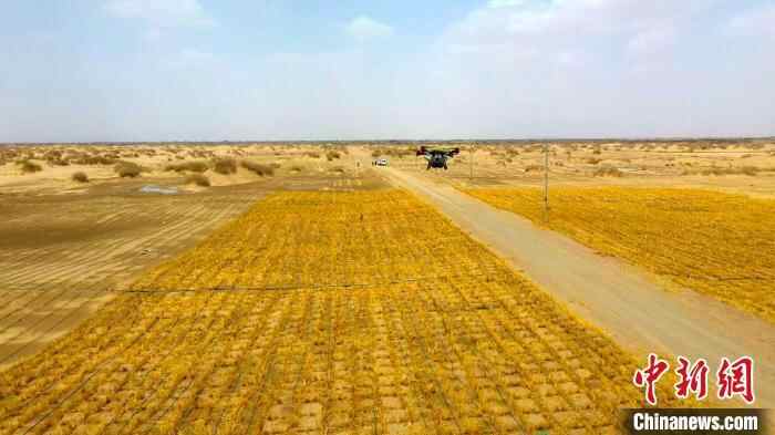 今年,新疆巴州尉犁县首次采用无人机飞播的方式,在浩瀚的塔克拉玛干沙漠中播下3000亩希望的种子 汪志鹏 摄