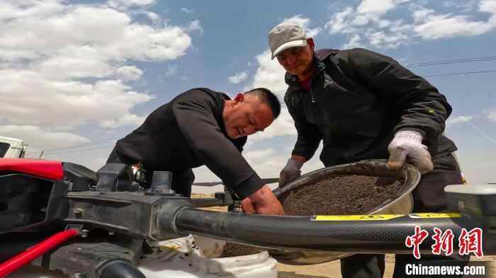 中新网乌鲁木齐5月18日电 (刘雨珊 申凯龙 汪志鹏)地处塔克拉玛干沙漠东北缘的新疆巴州尉犁县境内,林业部门的工作人员正忙着播种罗布麻。