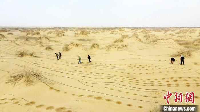 连日来,地处塔克拉玛干沙漠东北缘的新疆巴州尉犁县境内,林业部门的工作人员正忙着播种罗布麻。 汪志鹏 摄