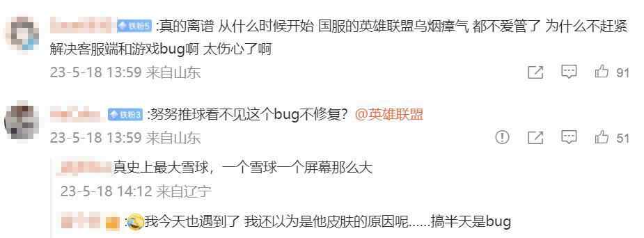 对此,许多游戏玩家在该条微博评论区热议,大部分都是吐槽游戏的bug问题:“天天让玩家谅解,天天一堆bug,天天抽奖”“bug联盟”“天天都有bug,天天都说正在修复,到头来一个bug都没修,就知道卖皮肤圈钱你还会干什么”“真的离谱 从什么时候开始 国服的英雄联盟乌烟瘴气 都不爱管了 为什么不赶紧解决客服端和游戏bug啊 太伤心了啊”