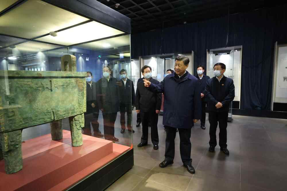 2022年10月28日,习近平在安阳市殷墟博物馆考察。
