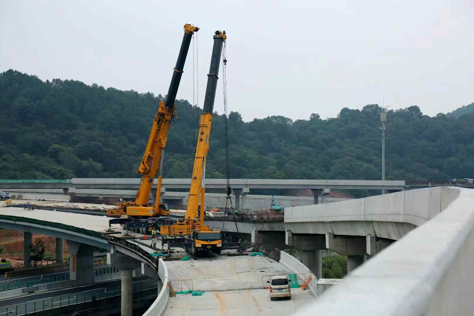 中和里枢纽互通作为从埔高速起始点,与三条高速公路形成立体式交叉,跨路施工点位多、难度大,施工程序复杂。为确保互通主线桥及匝道桥箱梁架设如期完成,广州交投集团优化施工方案,合理配置资源,精心组织生产,严格控制运架梁时间节点,有效提高施工效率,同时减少对营运高速的影响。