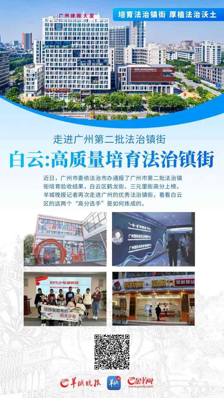 近年来,广州市围绕打造法治城市标杆目标,聚焦夯实基层法治根基,积极推进镇街法治建设,打造了一批在全国叫得响的基层治理法治化“广州品牌”。其中,广州市委依法治市办精心统筹开展的法治镇街培育工作更是取得瞩目成绩。近日,广州市委依法治市办通报了广州市第二批法治镇街培育验收结果,白云区鹤龙街、三元里街高分上榜。羊城晚报记者再次走进广州的优秀法治镇街,看看白云区这两个“高分选手”是如何炼成的。