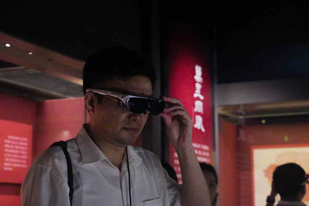 在开幕式现场,南越王博物院还推出了展览配套的全新AR眼镜智慧导览服务。该技术通过虚实结合的方式,在真实的场景上叠加图文、多媒体、三维模型等数字资源。观众戴上AR眼镜,在对应点位前便可自动触发内容,使文物和场景瞬间“活”起来,获得沉浸式的观展体验。