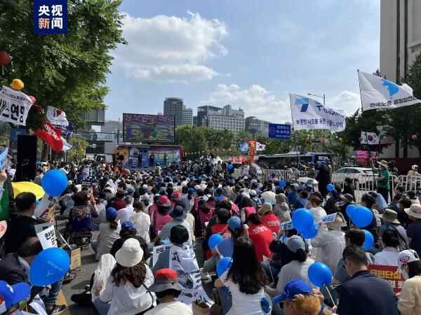 当地时间5月20日下午,大批韩国民众在首尔市中心举行集会,反对日本将福岛核电站核污染水排放至大海。