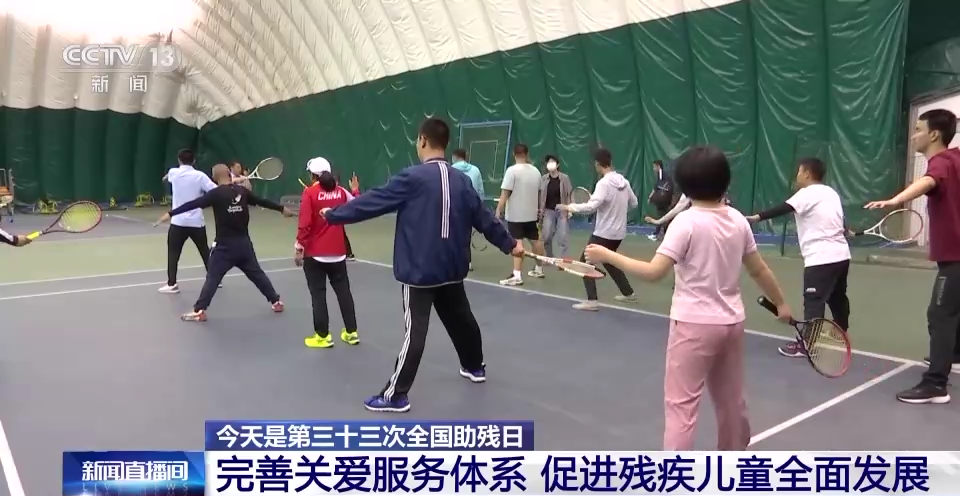 除了学会基本的生活技能,智力残疾儿童也要全面发展。助残日前夕,中国残疾人体育运动管理中心向智力残疾儿童免费开放。孙箐和康复中心的12名智力残疾儿童,开启了今年每周一次的免费学习。国家轮椅网球队的主教练亲自上阵,手把手给孩子们调整握拍姿势、“喂球”、指导发球。第一次成功发球的叮当,露出了开心的笑脸。