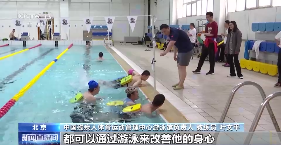 中国残疾人体育运动管理中心游泳馆负责人 教练员 叶文平:在我们保障国家队训练之余,对残疾人大众体育活动进行开放,很多智力残疾的这些小朋友们,他们在水里以后特别开心,带来他们这种身心的积极向上的精神。还有克服自卑、胆怯,都可以通过游泳来改善他的身心身体各方面的这种康复效果,对他们未来的这种生活和学习都有一个很好的帮助。