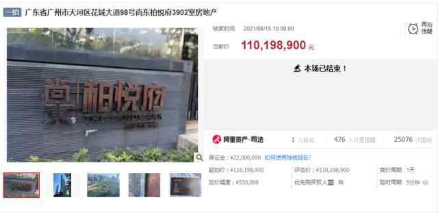 此前广州法拍单套住宅成交记录为尚东柏悦府。