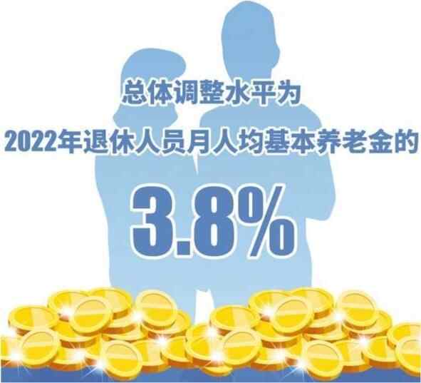 据新华社电 经党中央、国务院批准,人社部、财政部22日发布《关于2023年调整退休人员基本养老金的通知》,明确从2023年1月1日起,为2022年底前已按规定办理退休手续并按月领取基本养老金的企业和机关事业单位退休人员提高基本养老金水平,总体调整水平为2022年退休人员月人均基本养老金的3.8%。