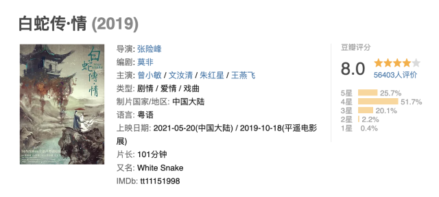 此前,《白蛇传·情》于2021年5月20日公映,创下了多项纪录: