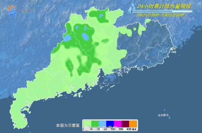 预计,这场“龙舟水”今日(24日)还得接着下,粤西和珠江三角洲有中到大雨,部分市县暴雨或大暴雨。明起降水减弱,气温回升。