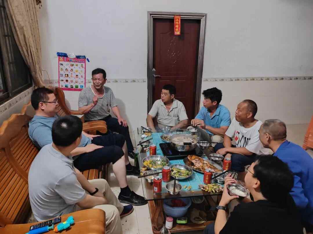 晚上,给陈德道打电话。他那边喧闹非常。陈德道人很兴奋,大声说正在“团长”家里吃饭、喝酒,“团长”杀了最好的鸡,做了最好的菜,拿出了最好的酒。和七八个村民在一起。