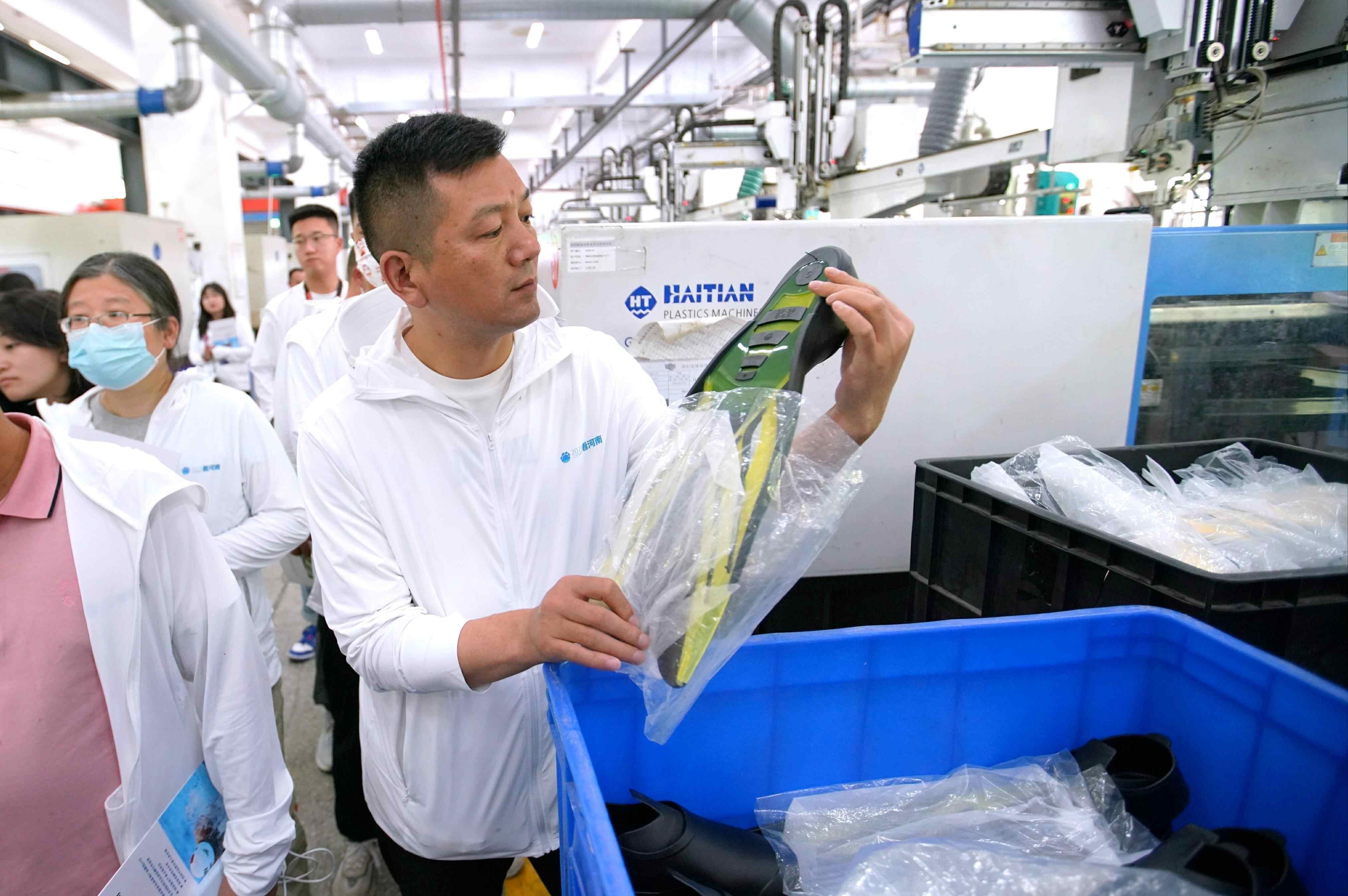 在宜阳县产业集聚区,采访团来到总投资3亿元、占地面积150亩的洛阳富隆特体育用品有限公司。该公司主要生产泳帽、泳镜、泳衣、潜水镜、呼吸管、蛙鞋等游泳类和潜水类体育产品,是世界游泳名将菲尔普斯自有MP品牌在中国的总代理。2022年,公司年产值1.2亿元。