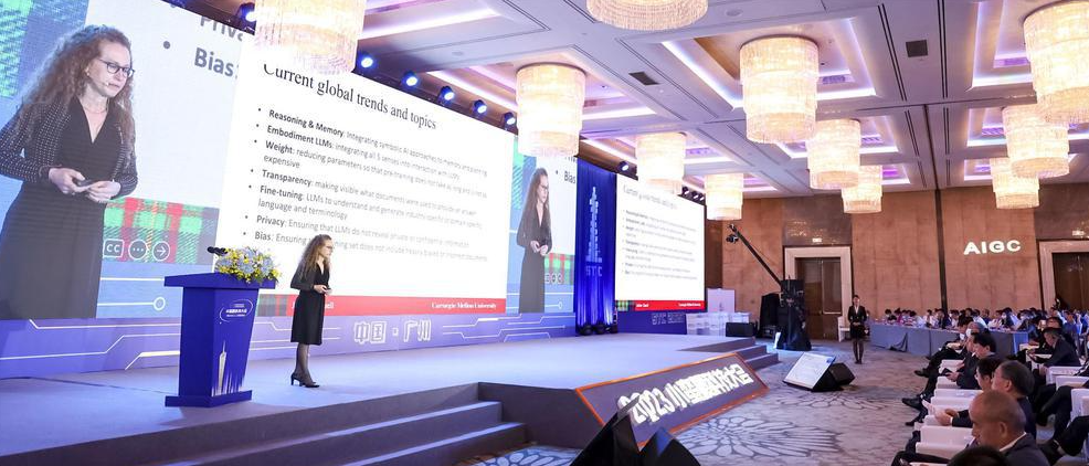有着“人工智能女王”之称的卡耐基梅隆大学计算机学院讲席教授、前副院长,法国国家信息与自动化研究所研究主任贾斯汀·卡塞尔以“从大语言模型到Chat GPT:AI时代的语言革命”为主题发表演讲。
