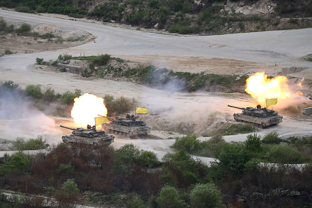 美韩在三八线附近启动“最大规模”实弹演习