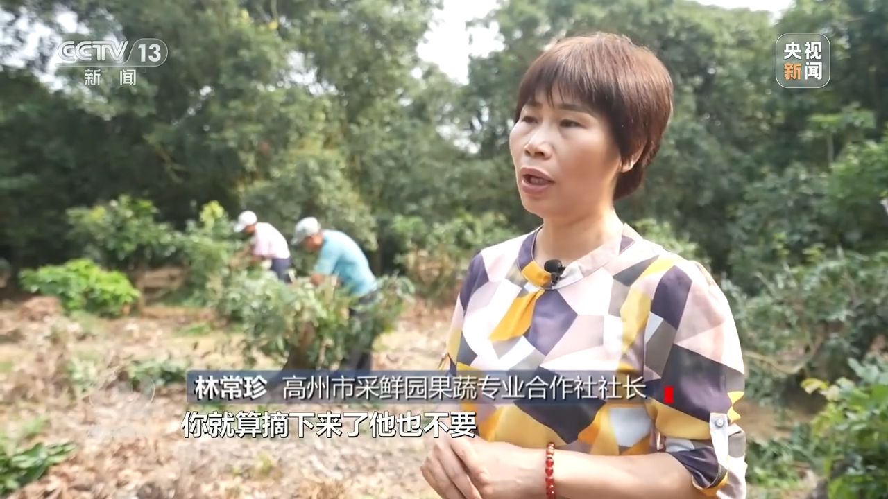 高州市采鲜园果蔬专业合作社社长 林常珍:以前果商一天可能收三万斤或者五万斤,他收够了,你就算摘下来了他也不要,你再求他,如果他真正要也是很便宜。当天收购价是2块钱,但是他会压到1块或者8毛钱。