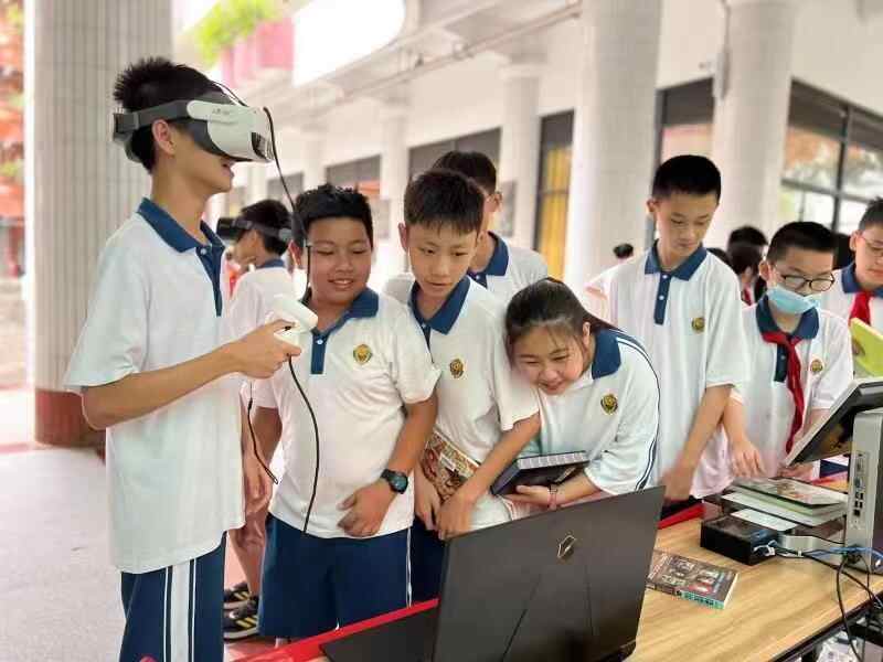 位于越秀区图书馆三楼数字馆的智能问答机器人“小越”,正忙着和小朋友们探讨诗歌。